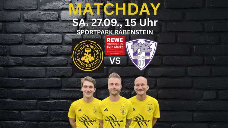 Am kommenden Samstag treffen unsere "Handwerkerjungs" anlässlich des 6. Spieltags der Sachsenliga im heimischen Sportpark Rabenstein auf den VfL Pirna-Copitz 07. Die Gäste aus der Elbe-Stadt sind mit zwei Unentschieden und drei Niederlagen in die Sachsenliga gestartet. Damit steht die Kessler-Elf noch ohne Sieg da und kämpft bereits jetzt um jeden Punkt für den Klassenerhalt.